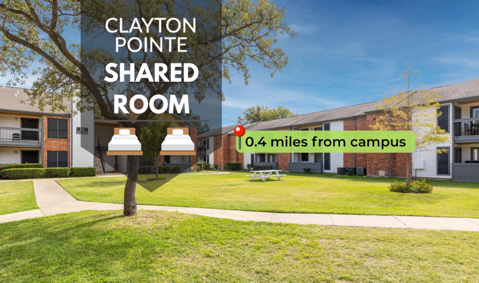 Each occupant in the apartment has an individual lease and is not responsible for the vacancy or delinquency of the other occupied beds. Each occupant will have a twin-sized bed, dresser, and shared living room furniture. The utilities that are included in the rent are electricity and water.