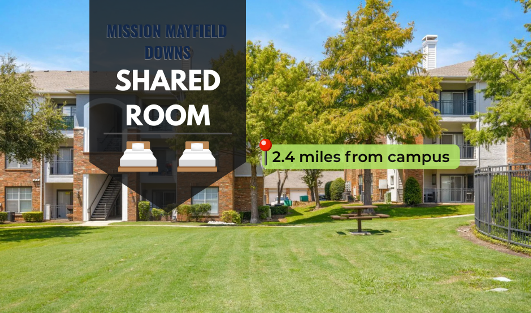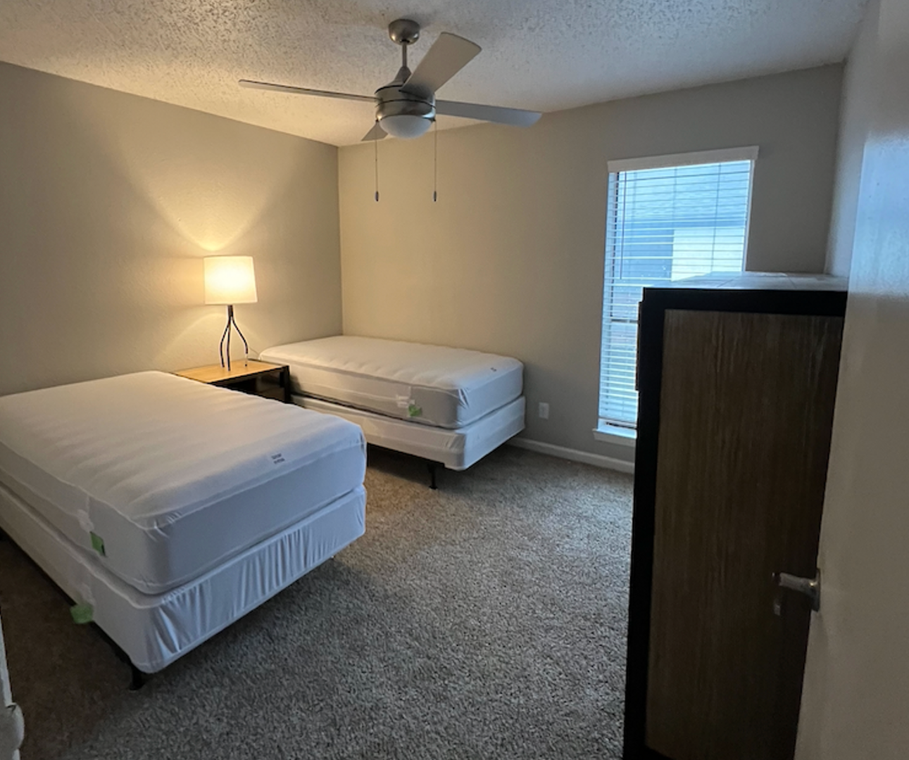 Each occupant in the apartment has an individual lease and is not responsible for the vacancy or delinquency of the other occupied beds. Each occupant will have a twin-sized bed, dresser, and shared living room furniture. The utilities that are included in the rent are electricity and water.